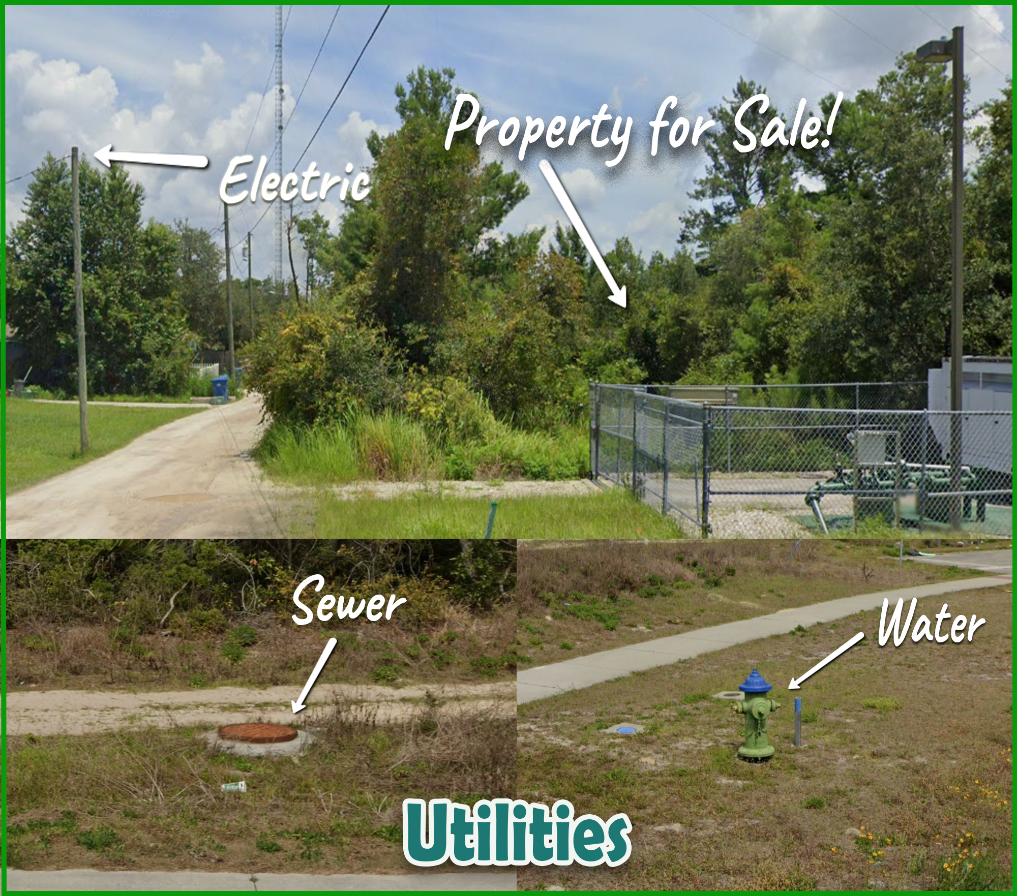 Power, Sewer and Water available on the road.